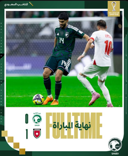 ودّع المنتخب السعودي منافسات بطولة كأس العرب 2025، بعد خسارته أمام نظيره الأردني بهدف دون مقابل، في اللقاء الذي جمعهما اليوم على إستاد البيت، ضمن مواجهات الدور نصف النهائي من البطولة.