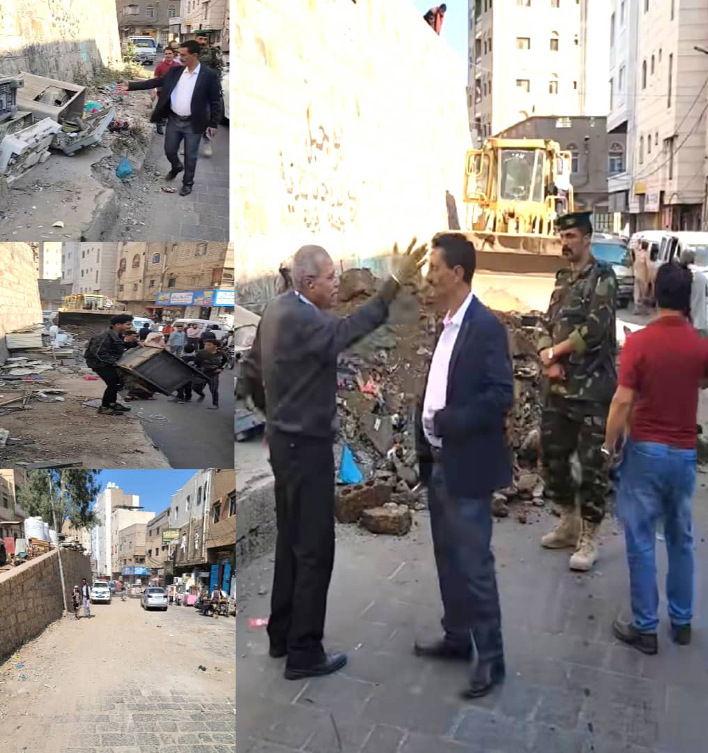 تنفيذاً توجيهات محافظ محافظة تعز، وبإشراف مباشر ومتابعة ميدانية من مدير عام مديرية القاهرة الأستاذ أحمد مرشد المشمر، نفّذ فرعا مكتب الأشغال وصندوق النظافة والتحسين، اليوم، حملة لإزالة الرصيف المستحدث منذ سنوات في شارع السلخانة، والذي تم إنشاؤه بصورة عشوائية من قبل أصحاب محلات إصلاح الثلاجات والغسالات.