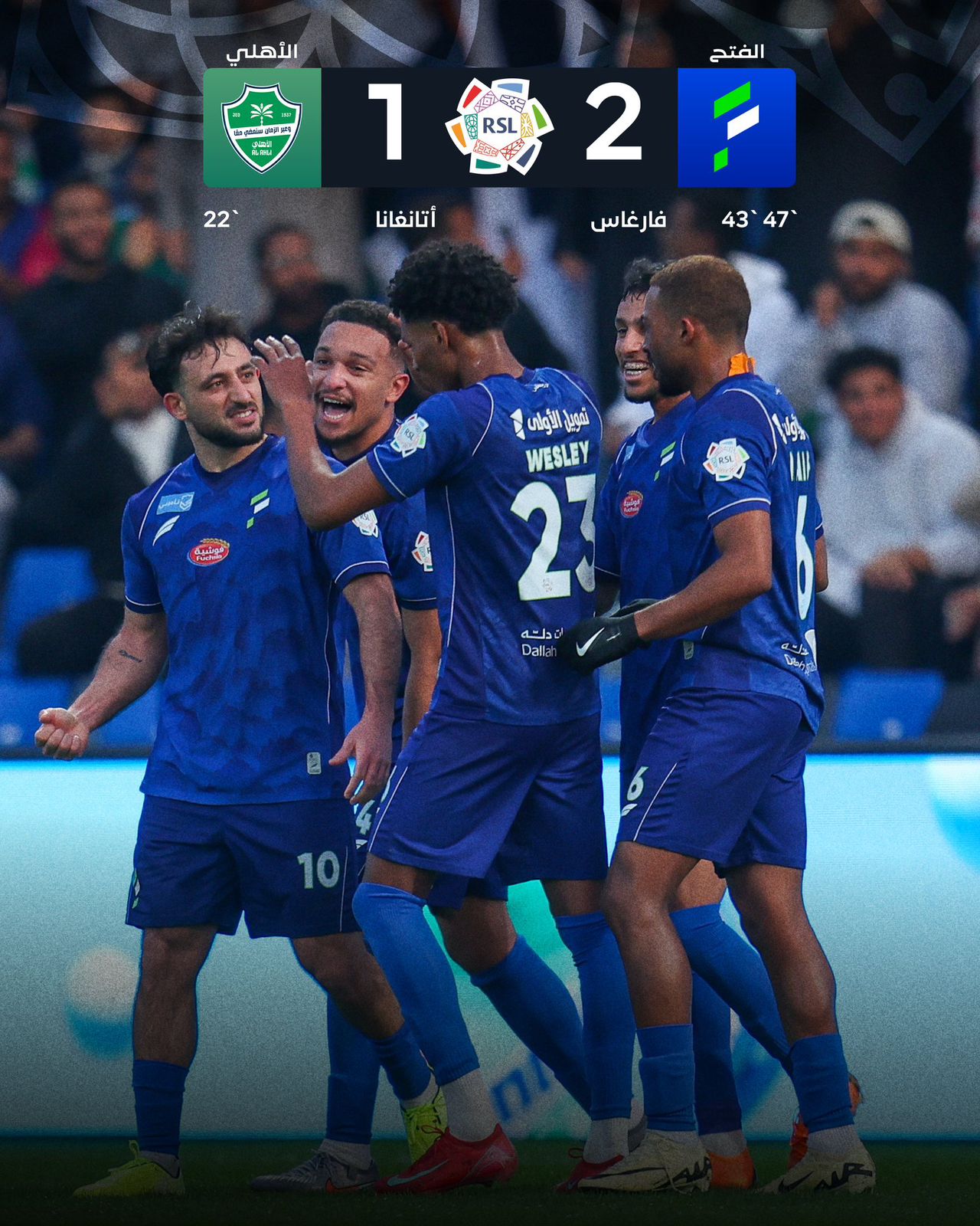 حقق نادي الفتح فوزًا ثمينًا على الأهلي، في المباراة التي جمعت الفريقين الجمعة على ملعب ميدان تمويل الأولى بمدينة الأحساء، ضمن منافسات الجولة الـ11 من دوري روشن السعودي للمحترفين.