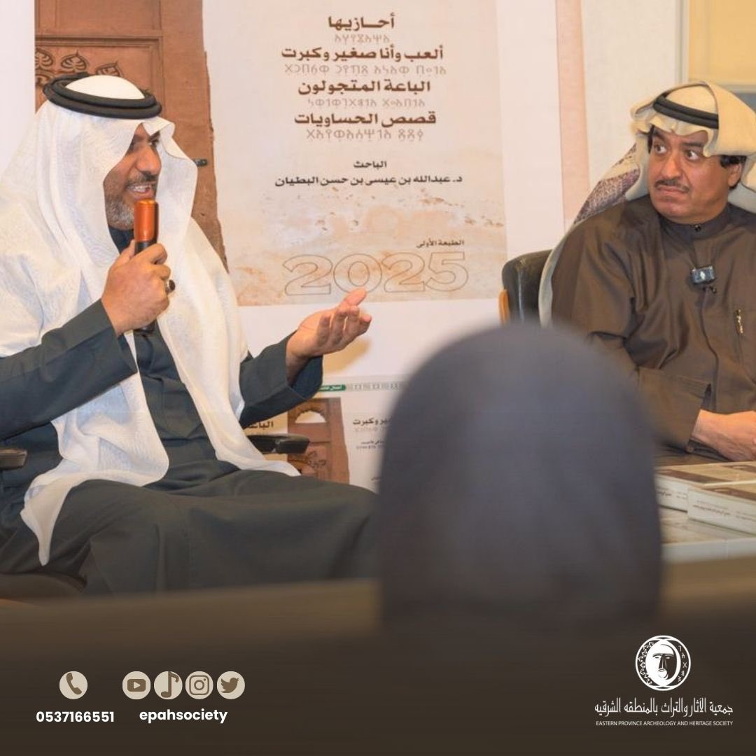 أقيم في جمعية الآثار والتراث بالمنطقة الشرقية،لقاء ثقافي فكري خصص لمناقشة أحد الإصدارات المعرفية ضمن سلسلة تُعنى بالموروث الثقافي والسرديات الشفهية، واستضاف الأمسية الوكيل الأدبي الدكتور عبدالله البطيان، فيما أدار الحوار الأستاذ راشد القناص، حيث قدم طرحًا ثريًا أسهم في تعميق النقاش حول منهجية العمل ومضامينه ، وذلك بحضور عدد من المثقفين والباحثين والمهتمين بالدراسات التراثية.