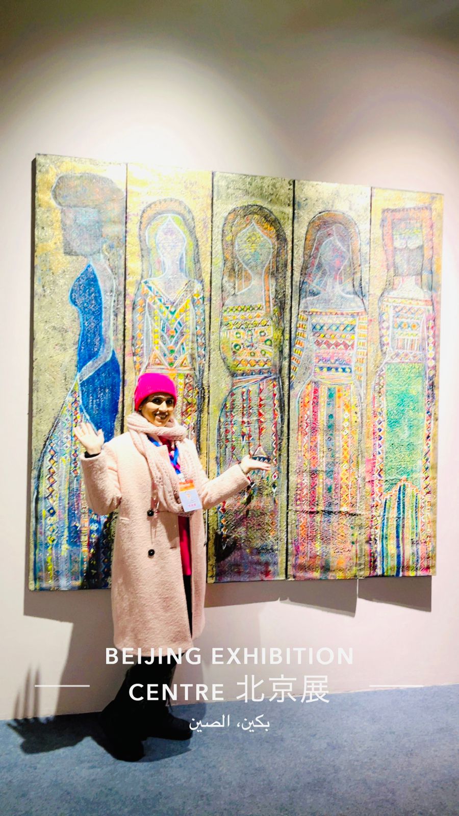 في Beijing Exhibition Centre، حيث يتحول الفن إلى لغة كونية، قدّمت أماني غيث عملاً فنياً معاصراً مكوّناً من خمس لوحات مترابطة، بقياس 40×200 سم لكل لوحة، في تجربة بصرية لا تُشاهد فقط، بل تُقرأ وتُحسّ. عملٌ يفرض حضوره منذ اللحظة الأولى، ويقود المتلقي في رحلة بين اللون، والرمز، والهوية.