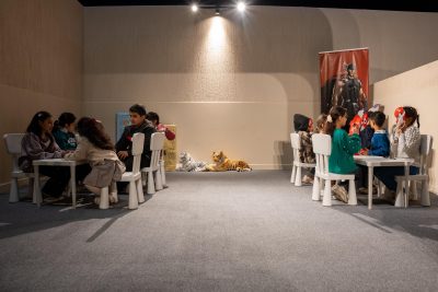 وقدّم ركن “حكاية طفل” خطوات تفاعلية تبدأ باختيار القصة وتقسيم الأدوار بين الأطفال، ثم تدريبهم على الحوار والحركة بأسلوب مبسط، يساعدهم على فهم الشخصيات والتعبير عنها بثقة، وصولًا إلى الصعود على المسرح والتمثيل أمام الحضور، في عرض يعكس تفاعلهم وحماسهم، قبل أن تُختتم التجربة بالتقاط الصور التذكارية.