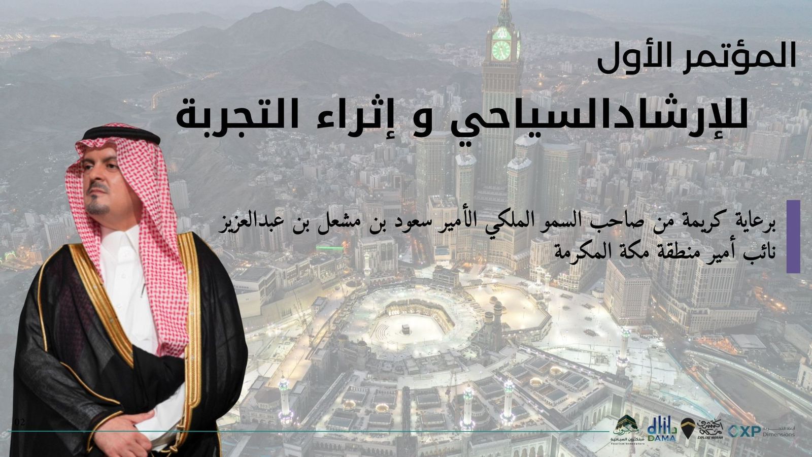 برعاية صاحب السمو الملكي الأمير سعود بن مشعل بن عبدالعزيز، نائب أمير منطقة مكة المكرمة، سوف تنطلق غدًا أعمال المؤتمر الأول للإرشاد السياحي وإثراء التجربة، خلال يومي 14 و15 يناير الجاري، في نادي وزارة الداخلية بمكة المكرمة، بمشاركة نخبة من القيادات والخبراء والمختصين في القطاع السياحي من داخل المملكة وخارجها.