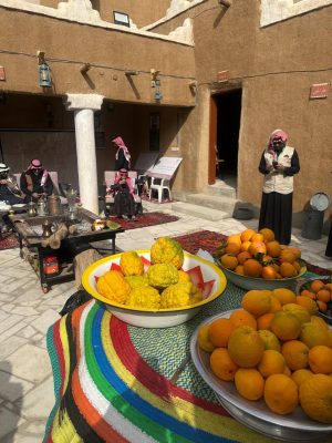 وكان في استقبال الفريق الدكتور رشيد الحمد، الذي اصطحبهم في جولة ثرية داخل المنزل، قدّم خلالها معلومات قيّمة عن تاريخ المنزل وما يحتويه من قطع تراثية ثمينة، لتتواصل الجولة مع شقيقه الأستاذ عبدالله الحمد، الذي أكمل سرد التفاصيل بكل حفاوة واهتمام.