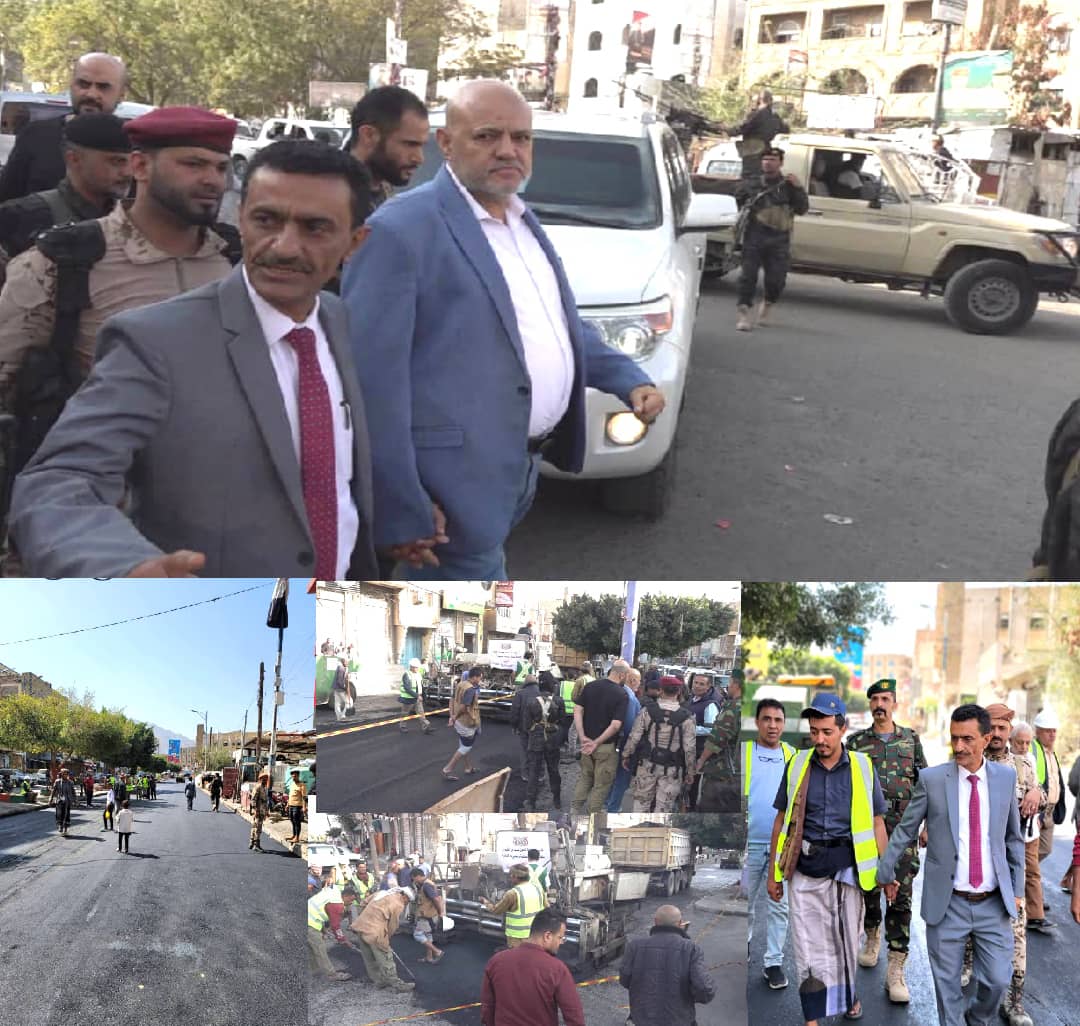 دشّن محافظ محافظة تعز الأستاذ نبيل شمسان، ومعه مدير عام مديرية القاهرة الأستاذ أحمد مرشد المشمر، اليوم، مشروع إعادة تأهيل وترميم وإضافة طبقة أسفلتية لخمسة شوارع رئيسية بالمديرية، إلى جانب تنفيذ مجسّم جمالي في جولة افتِهان، وأعمال تحسين البردورات والطلاء والأرصفة وخطوط السلامة المرورية، وذلك في إطار الجهود المبذولة للارتقاء بالبنية التحتية وتحسين المظهر الحضري للمدينة.