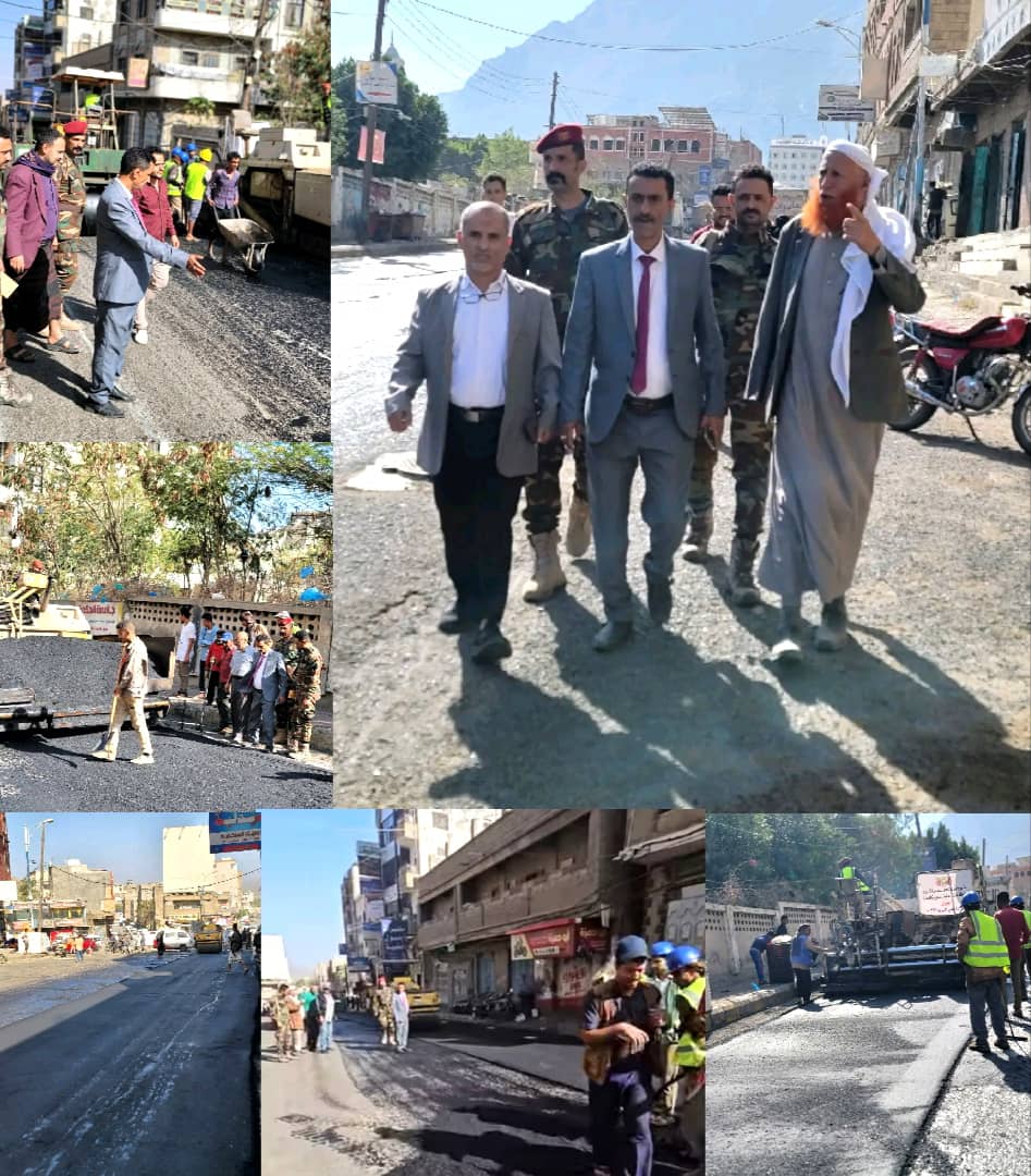 تنفيذاً لتوجيهات محافظ محافظة تعز الأستاذ نبيل شمسان، تفقد مدير عام مديرية القاهرة الأستاذ أحمد مرشد المشمر، اليوم، سير العمل في مشروع إعادة تأهيل وسفلتة عدد من الشوارع الحيوية في المديرية، في إطار الجهود المبذولة لتحسين البنية التحتية وتسهيل حركة السير للمواطنين.