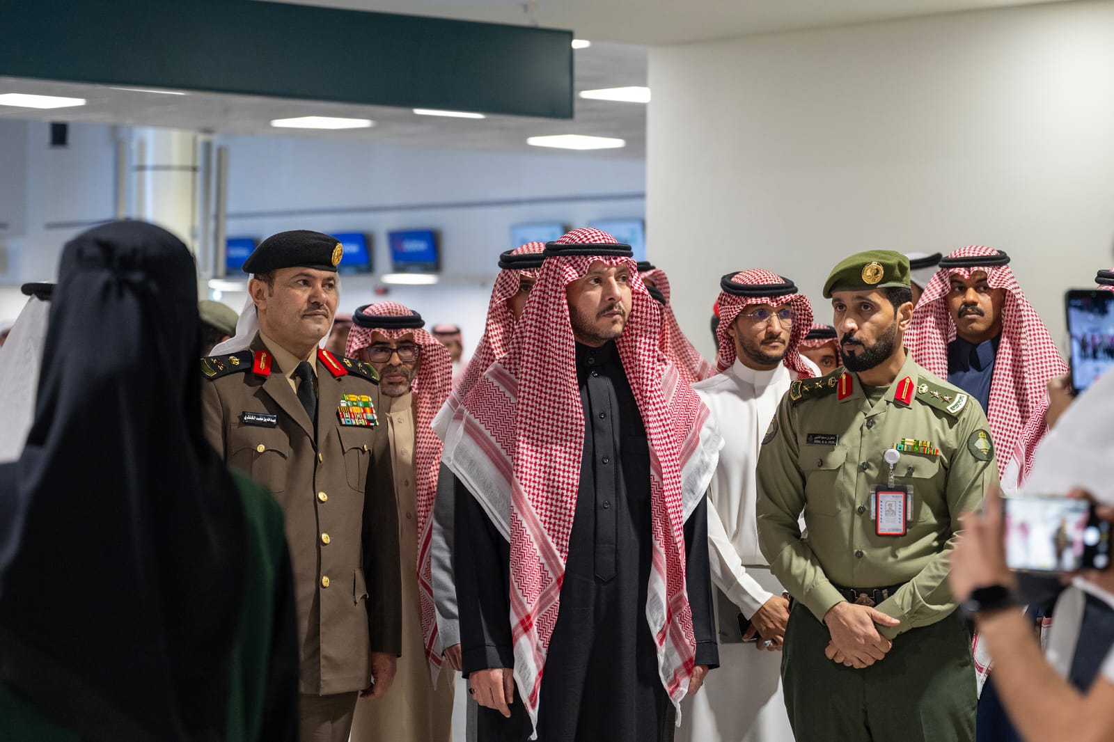 واطّلع سموّه خلال الجولة على منظومة التشغيل في صالات القدوم والمغادرة، والخدمات المساندة المقدّمة للمسافرين، إلى جانب الإجراءات التنظيمية التي تنفذها الجهات العاملة في المطار؛ بما يسهم في تسهيل حركة المعتمرين وتقديم تجربة سفر ميسّرة وآمنة.