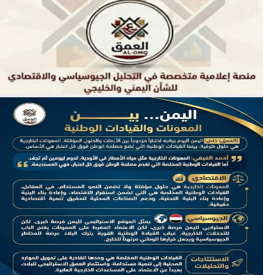 اليمن اليوم يواجه اختباراً مزدوجاً بين الأزمات والحلول المؤقتة؛ فالمعونات الخارجية تشكّل دعمًا ظرفيًا لا يستمر، في حين تشكل القيادات الوطنية المخلصة التي تضع مصلحة الوطن فوق كل اعتبار الركيزة الأساسية لاستقرار البلاد ومستقبلها.