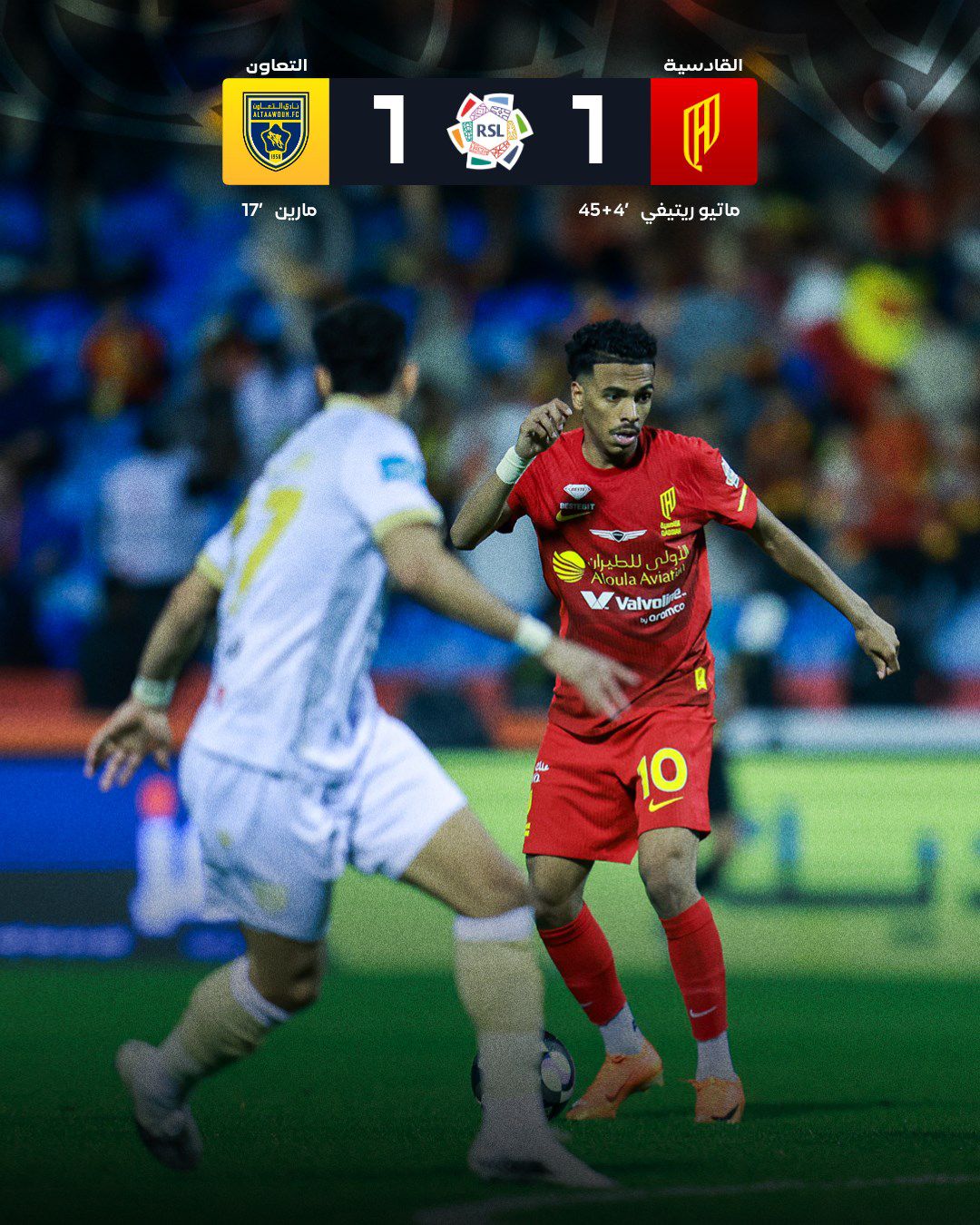 وانبرى ماتيو ريتيغي للركلة بنجاح، مسجّلاً هدف التعادل للقادسية، والهدف 13 في دوري روشن السعودي هذا الموسم.