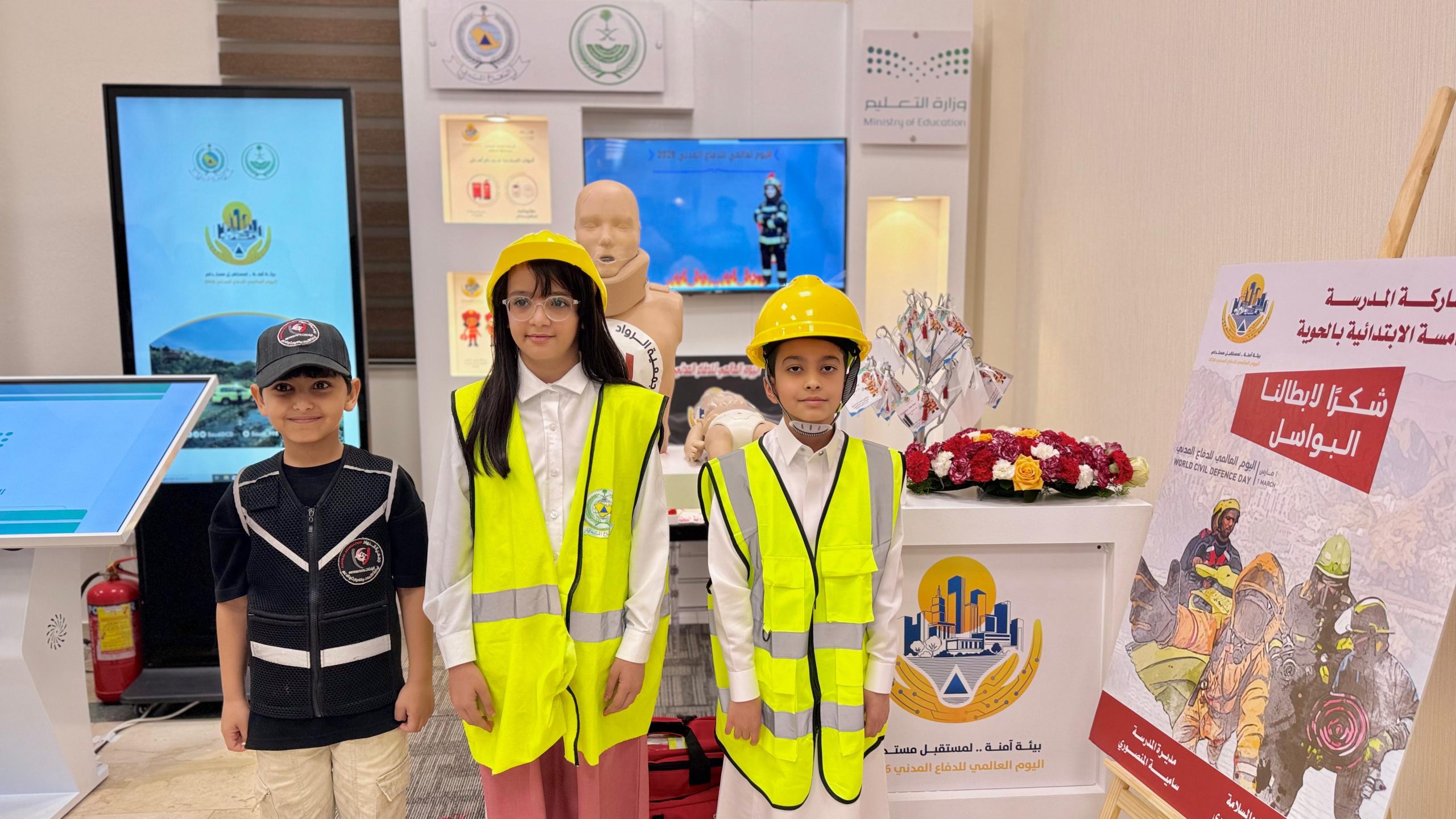 شاركت الإدارة العامة للتعليم بمحافظة الطائف، في معرض الدفاع المدني 2026 تحت شعار “بيئة آمنة.. لمستقبل مستدام”.والذي دشنه صاحب السمو الملكي الأمير فواز بن سلطان بن عبدالعزيز آل سعود محافظ الطائف مساء اليوم في جامعة الطائف جاء ذلك في إطار مشاركة ” تعليم الطائف ” ، في اليوم العالمي للدفاع المدني، مع الإدارات الحكومية والأهلية والغير ربحية ، بحضور المدير العام للتعليم بالطائف الدكتور سعيد بن عبدالله الغامدي الذي أكد أن مشاركة تعليم الطائف جانب من الفعاليات والبرامج التوعوية المنفذة في المدارس وهو عبارة عن ركن توعوي ومادة إعلامية عن السلامة شارك في اعدادها مجموعة من طلاب وطالبات المدارس بهدف يعزيز ثقافة السلامة في المجتمع التعليمي