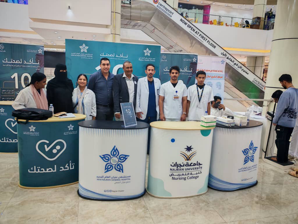 نظّمت كلية التمريض بجامعة نجران، بالتعاون مع تجمع نجران الصحي، مبادرة توعوية بعنوان “تطمّن على صحتك في رمضان”، وذلك ضمن جهودها المستمرة في نشر الثقافة الصحية وتعزيز الوعي بأهمية الوقاية من الأمراض المزمنة والكشف المبكر عنها، بما يسهم في تحسين جودة الحياة والارتقاء بالصحة العامة لدى أفراد المجتمع.