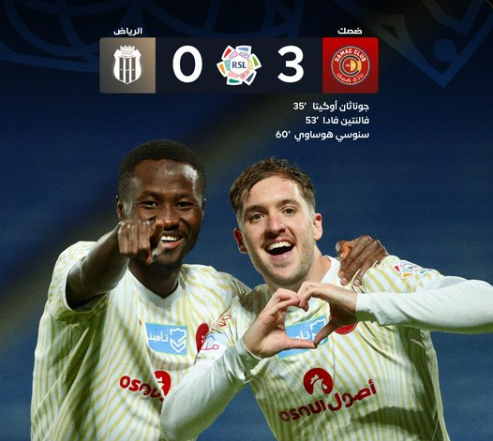 سجل أهداف ضمك جوناثان أوكيتا في الدقيقة 35، وفالنتين فادا في الدقيقة 53 وسنوسي هوساوي في الدقيقة 60.