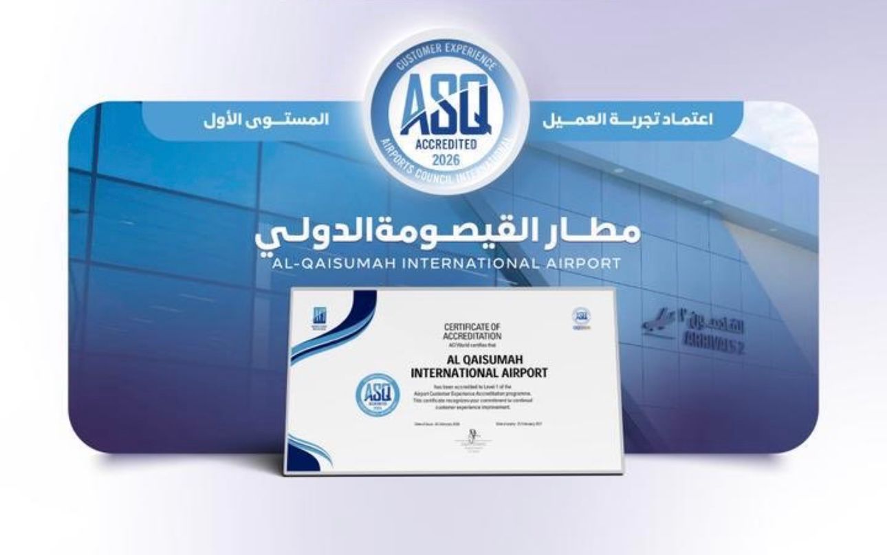 في إنجاز يعكس التزامه المستمر بتطوير تجربة المسافرين والارتقاء بجودة الخدمات، حصل مطار القيصومة الدولي على اعتماد تجربة العميل – المستوى الأول من مجلس المطارات الدولي (ACI)، في خطوة تعزز مكانة المطار ضمن المطارات التي تتبنى أفضل المعايير والممارسات العالمية في خدمة المسافرين.