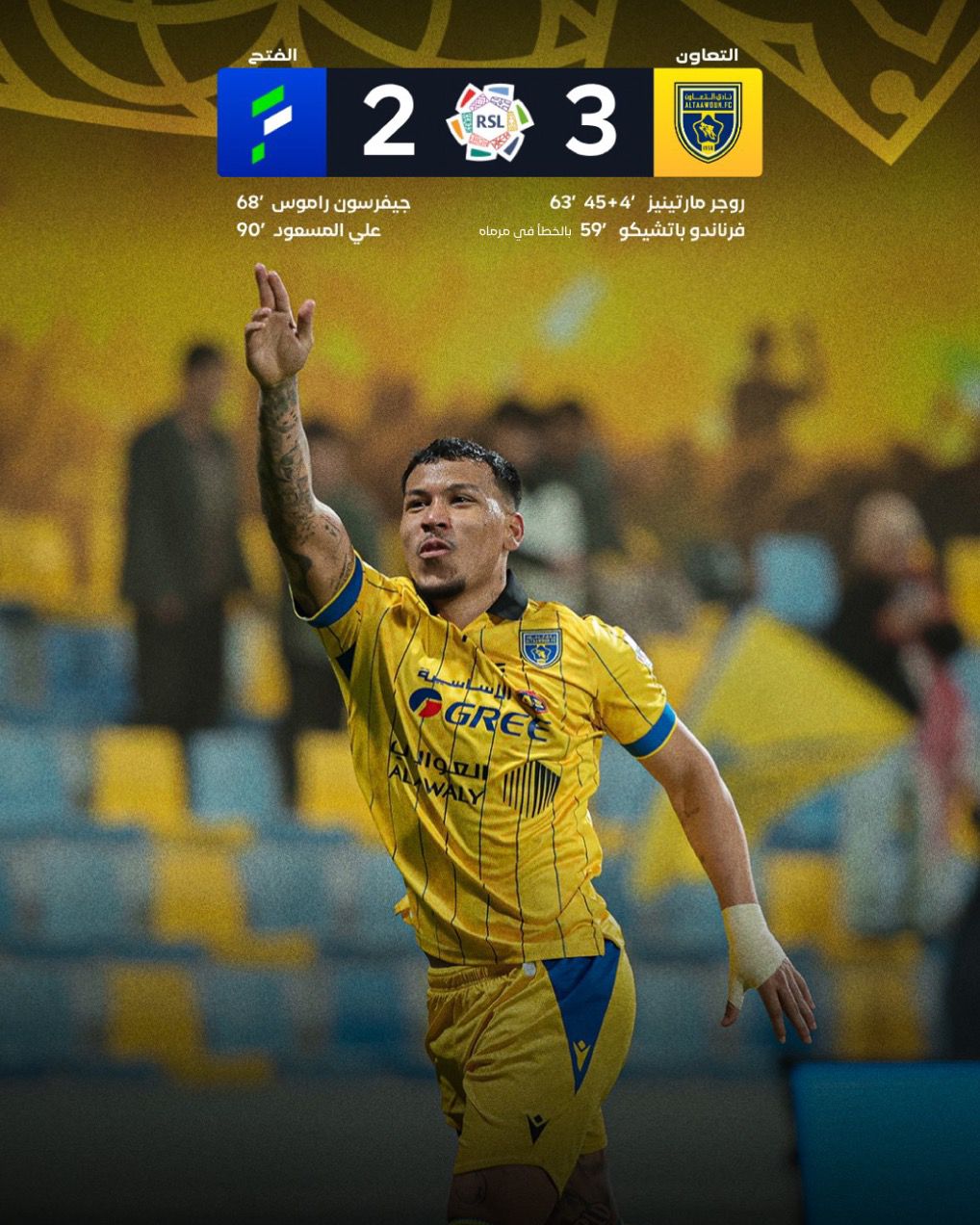 واستمر توهج التعاون ليسجل الهدف الثالث في الدقيقة 59، بعدما سجل لاعب الفتح فرناندو باتشيكو هدفًا بالخطأ في مرماه أثناء محاولته إبعاد الكرة ثم نجح الفتح في تقليص الفارق عبر لاعبه جيفرسون راموس الذي سجل الهدف الوحيد لفريقه في الدقيقة 69، إلا أن ذلك لم يكن كافيًا لتغيير نتيجة المباراة.