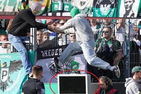 قام شخصان ملثمان بفصل التيار الكهربائي أثناء مراجعة الحكام لضربة جزاء عبر الشاشة من خلال تقنية حكم الفيديو المساعد “فار” في دوري الدرجة الثانية الألماني لكرة القدم، الأحد.