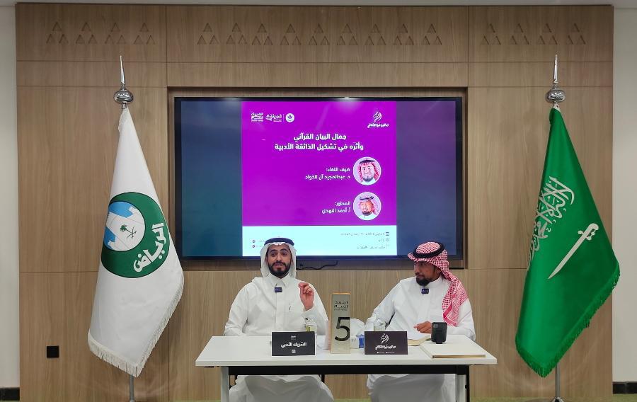 أقام صالون نُبل الثقافي، ضمن مبادرة الشريك الأدبي، جلسة حوارية بعنوان “جمال البيان القرآني وأثره في تشكيل الذائقة الأدبية”، قدّمها الدكتور عبدالمجيد آل الذواد، وأدارها الأستاذ أحمد النهدي، وذلك في إطار جهوده المتواصلة لتعزيز الوعي اللغوي والارتقاء بالذائقة الأدبية.