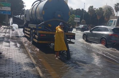 واستنفرت الأمانة طاقاتها لمجابهة أي حالات طارئة أثناء هطول الأمطار، ومتابعة أداء قنوات التصريف ومضخات المياه بالأنفاق، ونشرت جميع معدات سحب مياه الأمطار والتجمعات المائية في الميدان، وجرى توزيع فرق العمل بنطاق المحافظة، وتشغيل معدات وآليات الكسح والشفط وفتح الطرق، ووضعت جميع الكوادر البشرية المتخصصة في حالة تأهب لأي طارئ.
