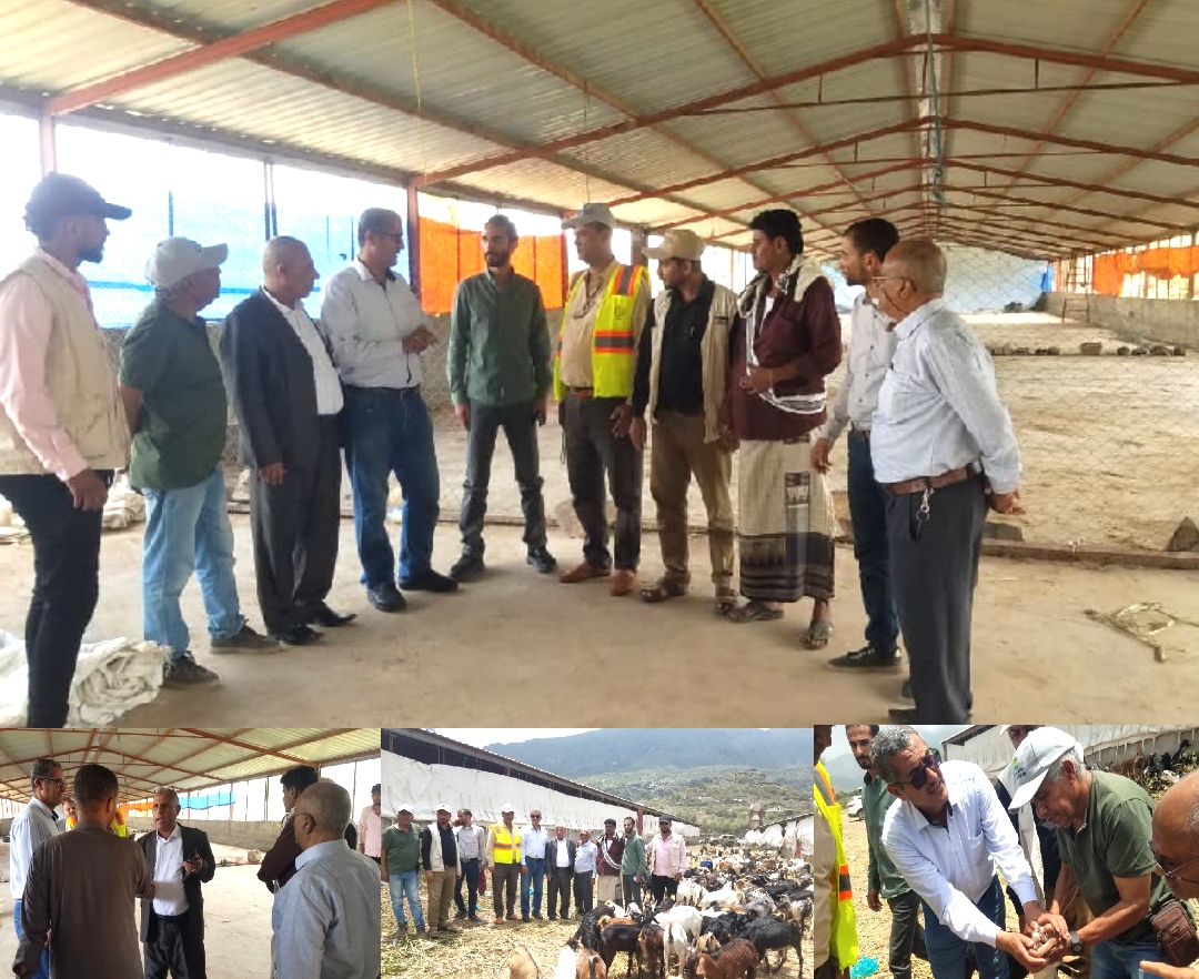 واستمع “الدعيس” إلى شرح مفصل من منسق المشروع وممثل منظمة الأغذية والزراعة (الفاو) الدكتور عبدالكريم البكير، حول مراحل تنفيذ المشروع، مستوى الإنجاز، التحديات الميدانية، والآليات المتبعة لدعم الأسر المستفيدة، مؤكّدًا على أهمية الالتزام بالاشتراطات البيطرية، ونظافة المحاجر، وسلامة المواشي، بما يضمن نجاح المشروع وتحقيق أهدافه الإنسانية والاقتصادية في محافظة تعز بشكل فعّال ومنظّم.