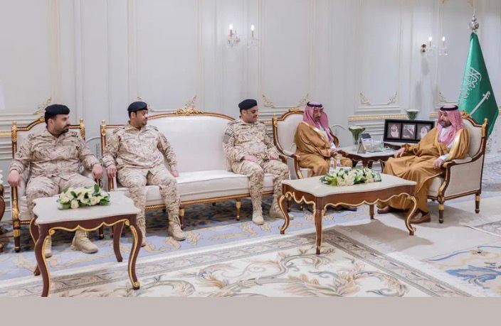 استقبل صاحب السمو الملكي الأمير محمد بن عبدالله بن عبدالعزيز، نائب أمير منطقة الحدود الشمالية، في مكتبه بالإمارة اليوم، أمير الفوج السابع والثلاثين بالحرس الوطني فلاح بن مشعل بن حثلين، يرافقه عددٌ من الضباط.