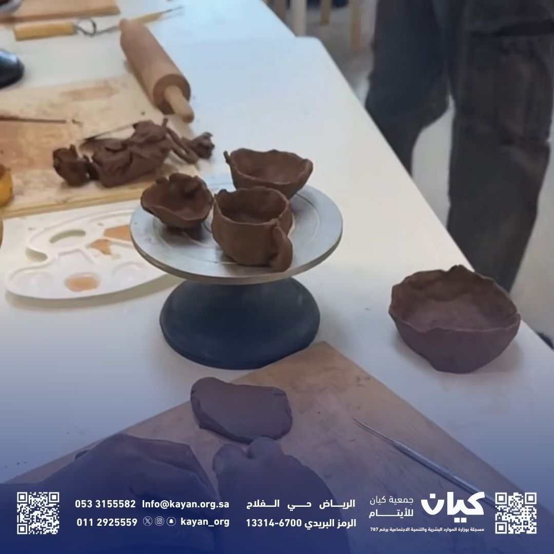 أقامت جمعية كيان للأيتام ذوي الظروف الخاصة، بالتعاون مع مؤسسة بينالي الدرعية، ورشة إبداعية متميزة للأطفال ضمن “مشروع جودة حياة”، استهدفت الفئة العمرية من 5 إلى 10 سنوات، تحت عنوان: “تشكيل حيواني المفضل بالطين”.