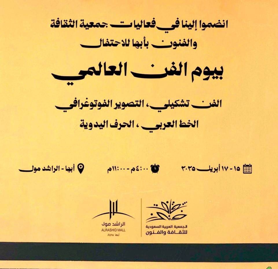 تتهيأ جمعية الثقافة والفنون في أبها للاحتفاء بـاليوم العالمي للفن عبر حزمة من الفعاليات التي تتحرك في مساحة الفن والثقافة بتناغم مع روح المناسبة. ويشهد مركز الراشد للفنون تدشين معرض للفنون البصرية بمشاركة واسعة من فناني وفنانات منطقة عسير، في مشهد يعكس تصاعد الحراك التشكيلي واتساع حضوره في المنطقة.