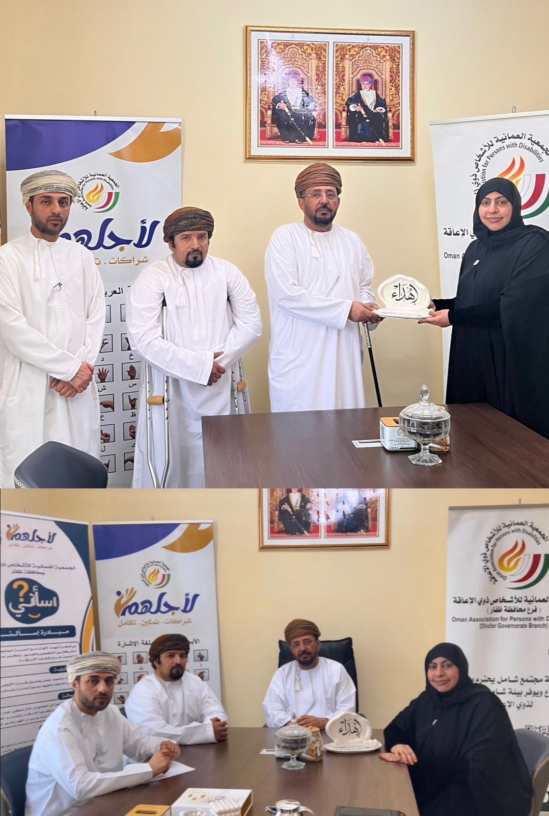 زاراليوم مقر الجمعية العمانية للأشخاص ذوي الاعاقة اللواء متقاعد المكرم سالم بن مسلم قطن نائب رئيس مجلس الدولة، حيث كان في استقباله الفاضلة آمال بنت أحمد آل إبراهيم رئيسة مجلس إدارة فرع الجمعية بمحافظة ظفار وعدد من أعضاء الجمعية.