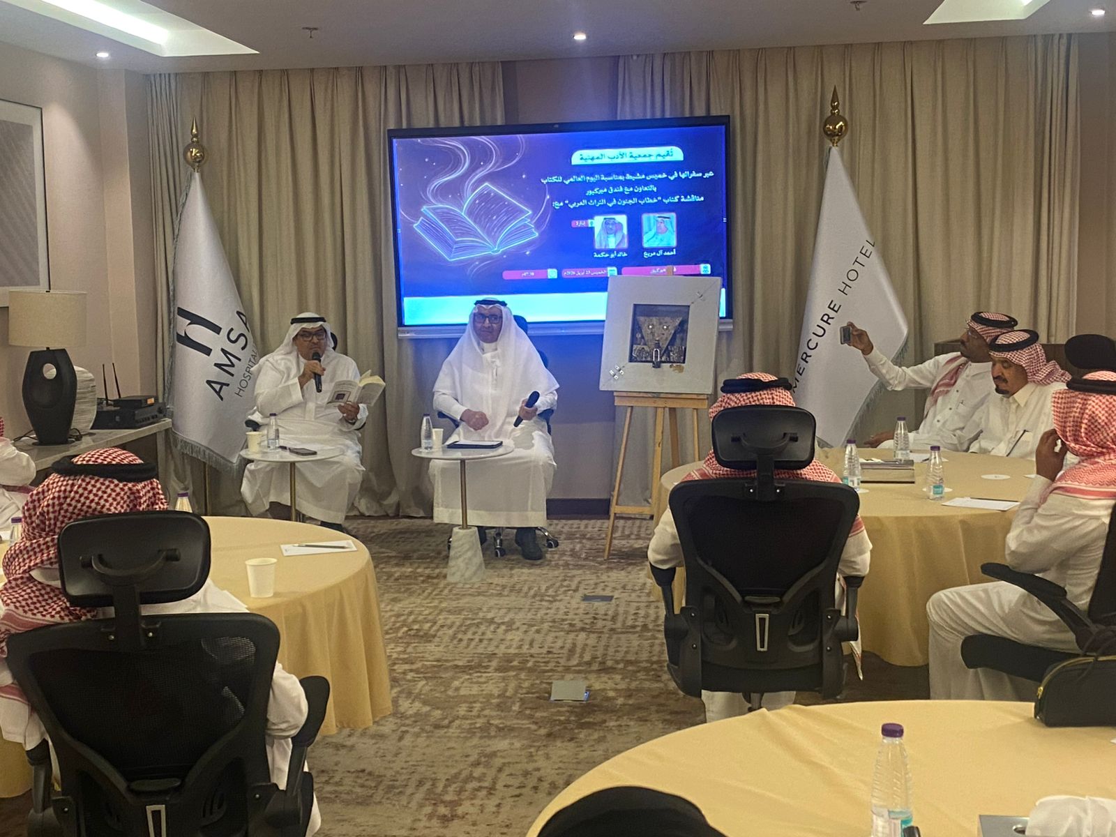 نظمت سفارة جمعية الأدب المهنية بمحافظة خميس مشيط أحد فعالياتها الثقافية أمس بفندق ميركيور من خلال مناقشة كتاب قدمها الأديب والناقد الدكتور أحمد آل مريع ( رئيس أدبي أبها )، وأدارها الدكتور خالد أبوحكمة ( عضو النادي ).