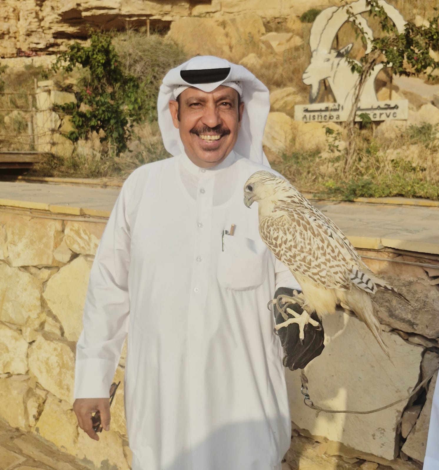 في صورة الأستاذ راشد السكران، لا يبدو المشهد مجرد رجل يحمل صقرًا، بل يبدو كأنه يمسك لحظةً كاملة… لحظة توازن بين ما هو بريّ… وما هو إنساني.