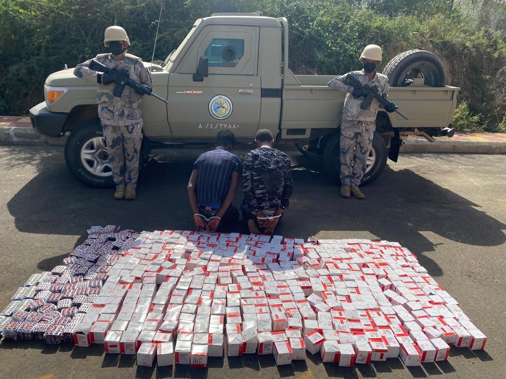 صرّح المتحدث الرسمي للمديرية العامة لحرس الحدود، العقيد مسفر القريني، بأن الدوريات البرية لحرس الحدود في مناطق نجران وجازان وعسير وتبوك ومكة المكرمة والمدينة المنورة، أحبطت محاولات تهريب (42.2) طنًا من نبات القات المخدر و(661) كيلو جرامًا من مادة الحشيش المخدر و(318,970) قرصًا خاضعًا لتنظيم التداول الطبي و(118,517) قرصًا من مادة الإمفيتامين المخدر، خلال الفترة من 15 / 6 / 1444 هـ حتى 6 / 7 / 1444هـ وقبضت على مهربيها، وعددهم (348) متهمًا، منهم (33) مواطنًا، و(315) مخالفًا لنظام أمن الحدود، وهم: (273) من الجنسية اليمنية، و(38) من الجنسية الإثيوبية و(3) من الجنسية المصرية و(1) من الجنسية الإريترية، وجرى استكمال الإجراءات النظامية الأولية بحقهم، وتسليمهم والمهربات لجهة الاختصاص.