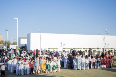 وقال الرئيس التنفيذي للمهرجان عمر بن عبدالعزيز الحموان أنه تم توزيع ٣٨٠٠ علم سعودي على زوار المهرجان، لاستشعارهم بأهمية هذا اليوم بهذه المناسبة الغالية التي ترمز إلى ما يوليه خادم الحرمين الشريفين الملك سلمان بن عبدالعزيز آل سعود وصاحب السمو الملكي الأمير محمد بن سلمان بن عبدالعزيز ولي العهد رئيس مجلس الوزراء – حفظهما الله – من عناية واهتمام بالعلم الوطني، حيث يمثل مظهراً من مظاهر الدولة وما حققته من وحدة وأمن ورخاء منذ تأسيسها على يد المؤسس الملك عبدالعزيز ـ رحمه الله ـ، وأنير مسرح المهرجان باللون الأخضر، وحولت لوحاته الإلكترونية للعلم السعودي.