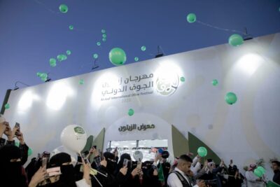 من جهته احتفل زوار المهرجان بيوم العلم بحمل راية المملكة العربية السعودية والتزين باللون الأخضر.