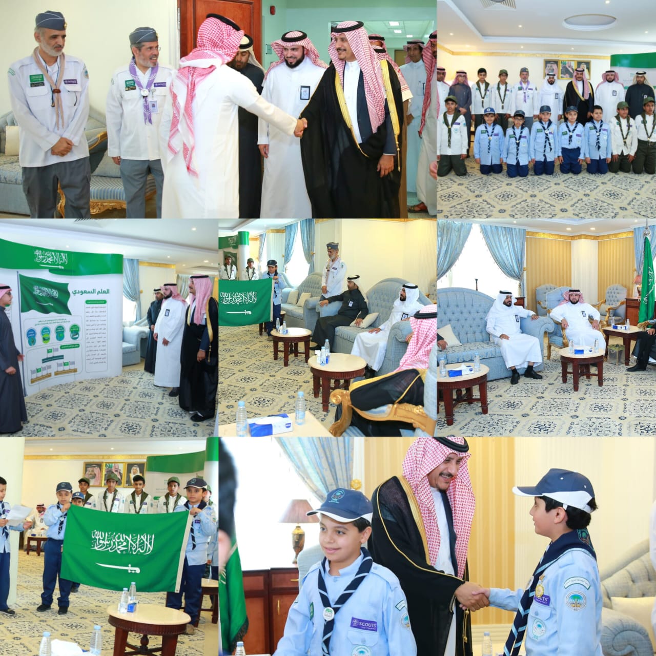 استقبل سمو محافظ المجمعة الأمير عبدالرحمن بن عبدالله بن فيصل اليوم في ديوان المحافظة مدير التعليم بمحافظة المجمعة الأستاذ يوسف بن عبداللطيف الملحم وبمعيته المساعد للشؤون التعليمية الأستاذ سعد بن غازي الحربي وعدد من الطلاب وأشبال كشافة تعليم المجمعة؛ وذلك احتفاء بيوم العَلم.