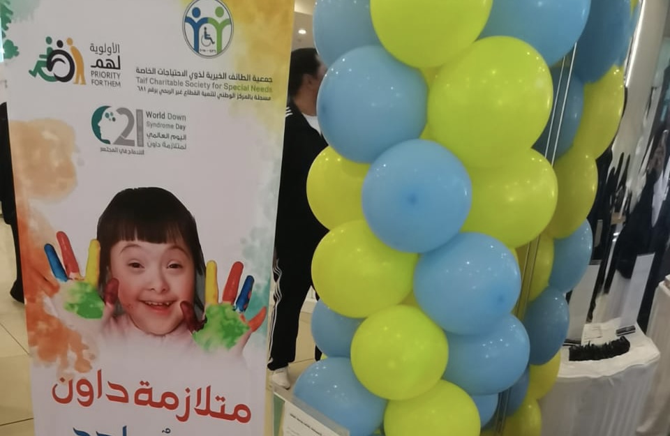 علمًا بإن جمعية الطائف لذوي الإحتياجات الخاصة لها دورًا كبيرًا في تأهيل ورعاية أطفال متلازمة داون منها دراسة الحالة والتدخل المبكر وتعديل السلوك وتنمية المهارات والنطق والتخاطب وعلاج وظيفي وعلاج بالرسم وتلبية احتياجاتهم من توفير الرعاية الصحية والتي تشمل إجراء الفحوص الطبية المنتظمة لمراقبة النمو العقلي.