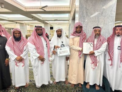 كما كرمت وكالة الشؤون التوجيهية والإرشادية ممثلة في الإدارة العامة للحلقات والمقرأة الإلكترونية 132 حافظاً من مختلف دول العالم، أتموا برنامج “عرض القرآن الكريم غيبا” على عدد من مدرسي الحلقات القرآنية بالمسجد الحرام، بمختلف الروايات، خلال مدة زيارتهم لمكة المكرمة وتأدية مناسك العمرة