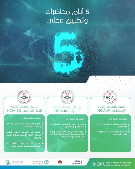 ويمكن لطلاب الجامعات والكليات السعودية والمهتمون في المجال أي يشاركوا في الدورات التدريبية وأن يحصلوا على شهادات البرنامج مجاناً. وسيتبع المشاركون دورة تدريبية عبر الإنترنت تتواصل على مدار خمسة أيام لنيل شهادة احترافية معتمدة من هواوي في تقنية المعلومات والاتصالات (HCIA). وتشمل الدورة ثلاث تخصصات تقنية – وهي الذكاء الاصطناعي وإنترنت الأشياء وتقنية الجيل الخامس. كما يمكن للطلاب الوصول إلى منصات التعلم التي توفرها هواوي والتسجيل لاتباع دورة تدريبية ونيل شهادات معتمدة في العديد من تخصصات التقنيات الحديثة.
