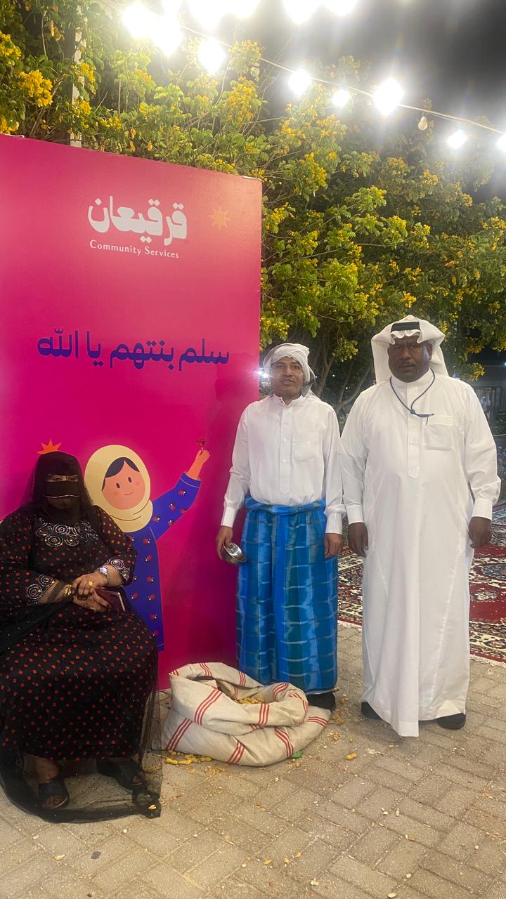 الأطفال في شرقي السعودية بالزي التقليدي يحتفلون بالقرقيعان، ويحملون أكياس قماشية تسمى الخريطة لجمع الحلوى،
