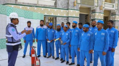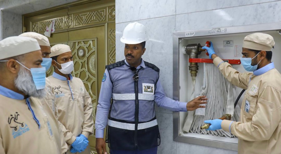 وأضاف: يأتي ذلك حرصاً على تطبيق المعايير العالمية للسلامة والصحة المهنية، في مختلف ميادين العمل، وخلق ثقافة الصحة والسلامة وتنمية القدرات للوصول إلى بيئة عمل آمنة خالية من المخاطر والإسهام في الحد من الإصابات المرتبطة بالعمل، كما تأتي هذه الجهود بتوجيهات وحرص من معالي الرئيس العام لشؤون المسجد الحرام والمسجد النبوي الشيخ الدكتور عبد الرحمن بن عبد العزيز السديس، ومتابعة من مساعد الرئيس العام للخدمات والشؤون الميدانية الأستاذ محمد بن مصلح الجابري.