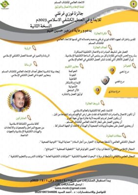 دعا الاتحاد العالمي للكشاف المسلم الاتحادات والهيئات والجمعيات والمجموعات الكشفية الإسلامية للمشاركة في النسخة الثانية لجائزة الراحل فوزي فرغلي للإبداع في العمل الكشفي الإسلامي من خلال رفع استمارة المشاركة بعد الاطلاع على ملف الجائزة الذي سوف يرسل لهم وسيتم نشره على صفحة الاتحاد ومواقع التواصل الاجتماعي .