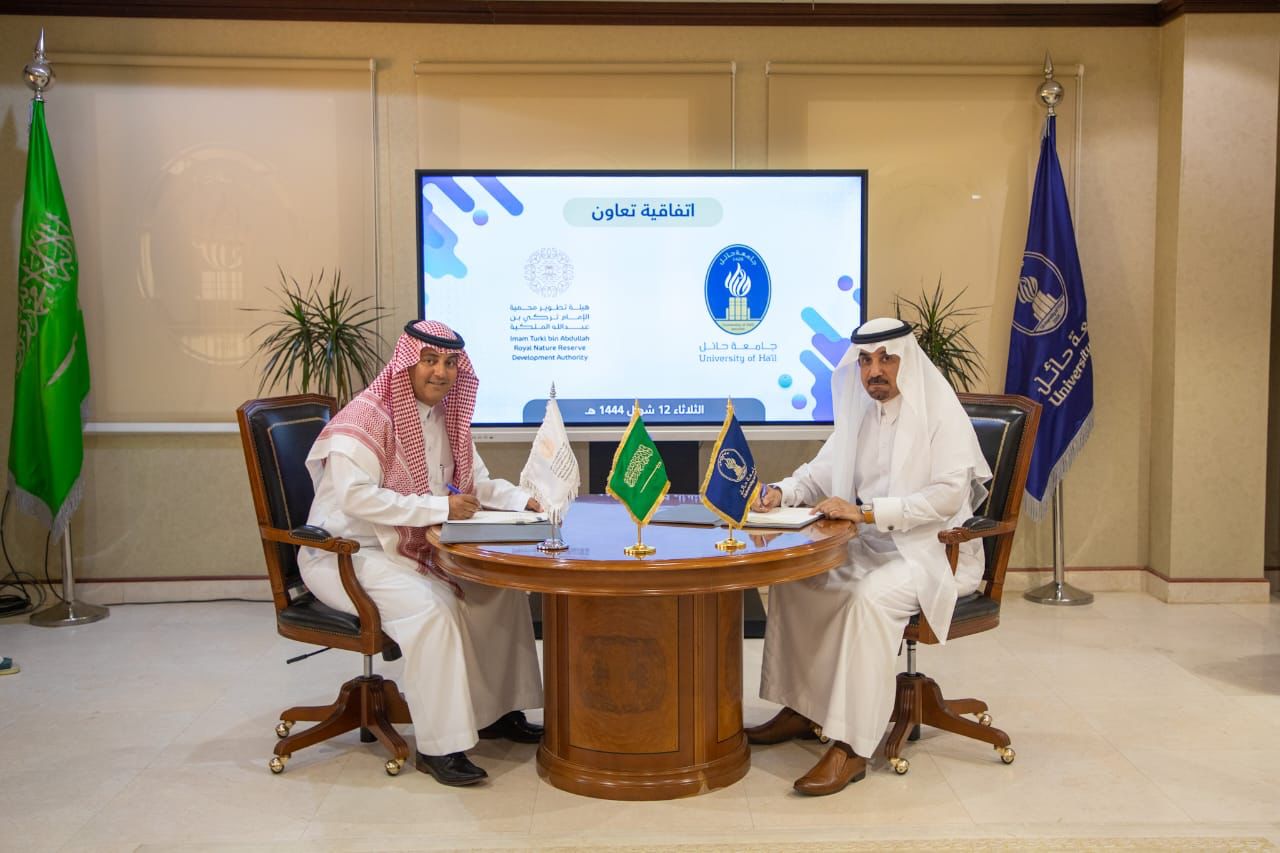 وقعت هيئة تطوير محمية الإمام تركي بن عبدالله الملكية، مذكرة تفاهم مع جامعة حائل، لتعزيز التعاون بين الجانبين في المجالات ذات اهتمام المشترك، كالبحث العلمي ودعم التوعية المجتمعية، وتشجيع العمل التطوعي لطلاب الجامعة، وعقد ورش العمل والمؤتمرات، وإطلاق المبادرات والحملات المشتركة.