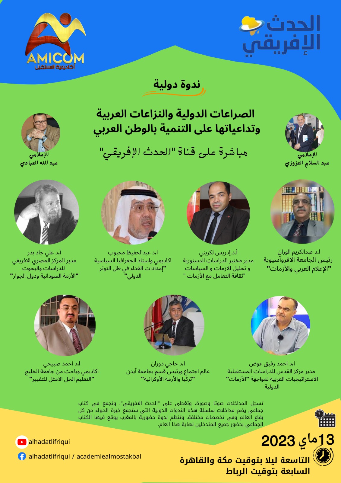 تأتى الفعالية في إطار سلسلة ندوات تقيمها جريدة الحدث الإفريقي وأكاديمية المستقبل للإعلام، حول تداعيات الصراعات الدولية على التنمية في البلدان العربية.
