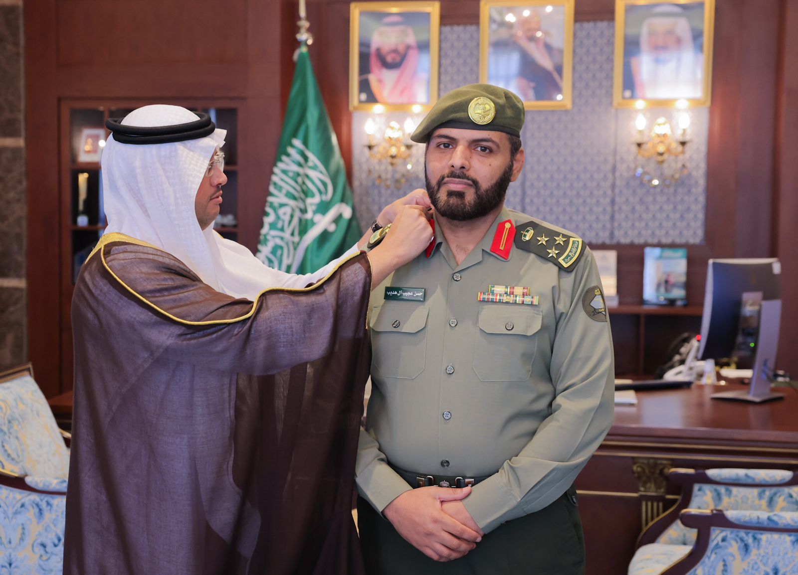 قلّد صاحب السمو الملكي الأمير سعود بن طلال بن بدر محافظ الأحساء بمكتب سموّه بمقر المحافظة مدير إدارة جوازات محافظة الأحساء العميد حسن بن عجيب ال هديب رتبته الجديدة عقب صدور الأمر السامي الكريم بترقيته لرتبة عميد