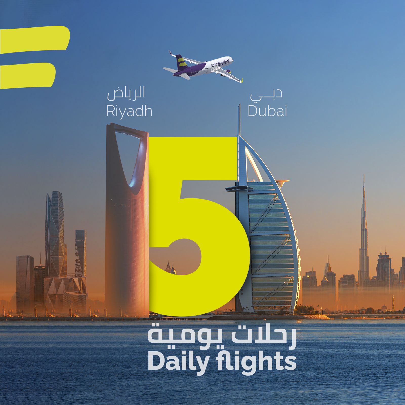 أعلن “طيران أديل” الذراع الاقتصادي لمجموعة الخطوط السعودية عن زيادة الرحلات اليومية ما بين مطار الملك خالد الدولي بالرياض ومطار دبي الدولي، وذلك بهدف مواجهة الطلب المتزايد على السفر على هذا القطاع المتنامي، وبذلك يرتفع عدد الرحلات الإجمالي التي تشغلها الشركة ما بين المملكة العربية السعودية ودولة الامارات العربية المتحدة إلى 5 رحلات يومياً ، وبمعدل تردد اسبوعي يصل إلى 33 رحلة ترتبط بها العاصمة الرياض مع محطاتها الدولية دبي التي تعد نافذتها الأولى للانطلاق دولياً وبداية توسعها خارجياً، حيث تم افتتاحها في الثاني من شهر يوليو من عام 2021م.