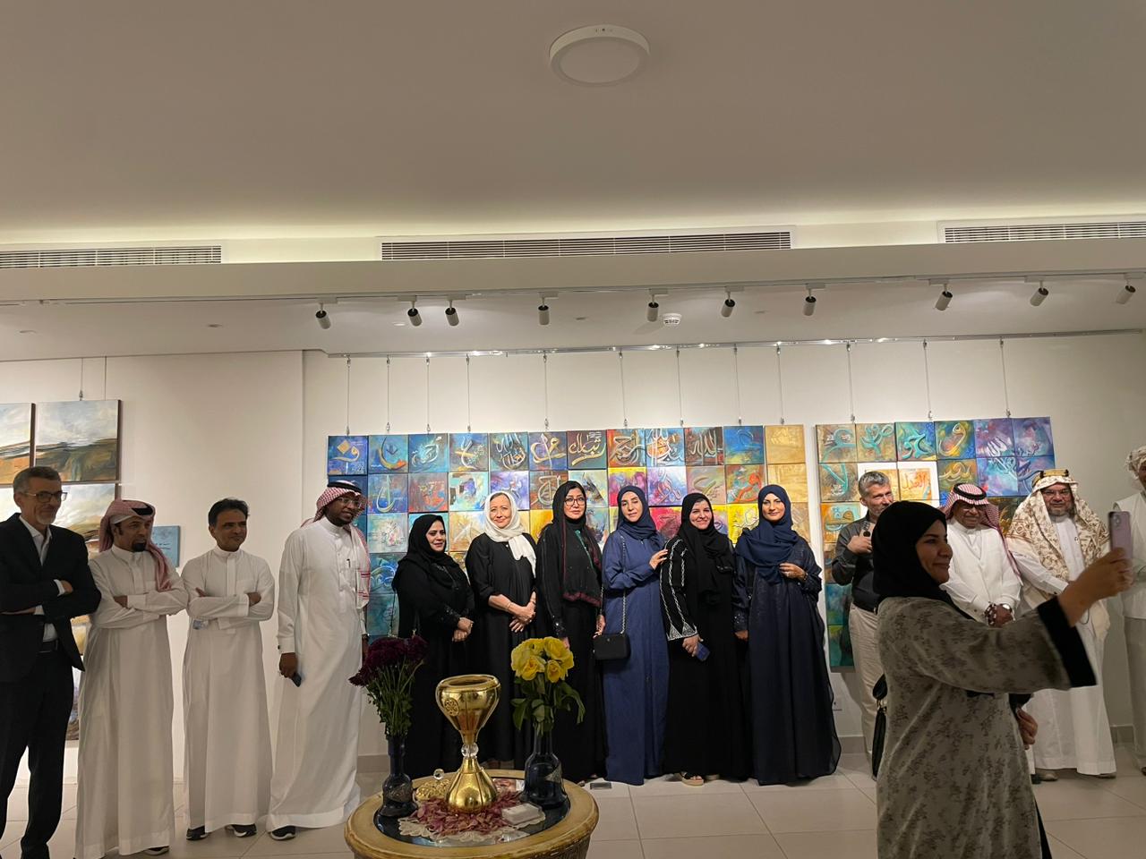 و شارك كل فنان ب (16) عمل فني مقاس ٥٠×٥٠سم والتي تشكلت في لوحة جدارية يصل حجمها &لى ٢×٢متر .. هذا ويحمل كل عمل طابع مختلف يعبر عن تجربة طويلة اصيلة لفنانين كبار وهم : الفنان نهار مرزوق والفنان عبدالعزيز بو يعشر والفنانة أمل فلمبان والفنان أيمن غرايبة من الأردن الشقيقة والفنانة سامية بن زينه أضافة لعمل جدارية جماعي لمجموعة من الفنانين والفنانات الواعدين تشكلت من وحدات صغيرة ٢٥×٢٥سم بعدد يزيد عن ١٠٠ قطعة كونت جدارية ارتفاعها ٢×٦ أمتار وبحضور لفيف من المثقفين والشخصيات العامة المهمة تم الافتتاح وسط اشادة بأعمال الفنانين المشاركين وكانت فرصة للتعرف على أعمال الفنان الأردني المعروف أيمن غرايبه والذي يعرض لأول مرة في المملكة حيث
