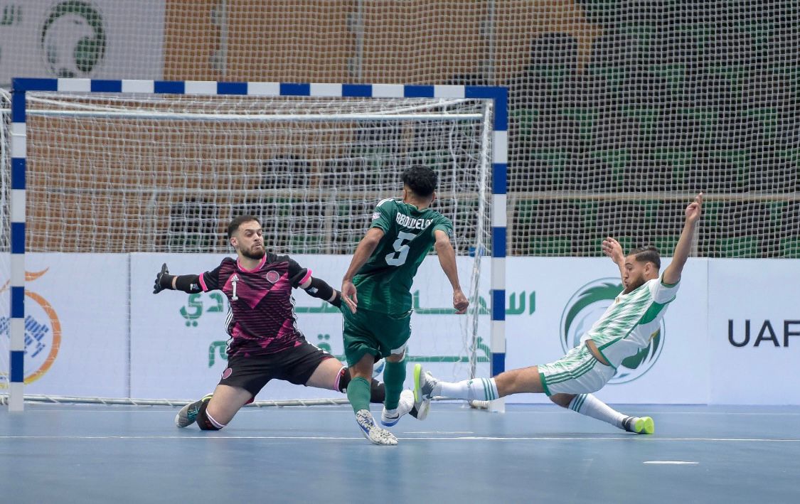 تعادل المنتخب الوطني الأول لكرة قدم الصالات مع شقيقه الجزائري بنتيجة 4-4 في المباراة التي جرت بينهما ،في افتتاح منافسات بطولة كأس العرب لكرة القدم داخل الصالات والتي تحتضنها جدة خلال الفترة من 6-16 يونيو الجاري، بمشاركة منتخبات المغرب، مصر، ليبيا، العراق، الكويت، لبنان، الجزائر، فلسطين، موريتانيا، جزر القمر وطاجيكستان، بالإضافة إلى منتخبنا الوطني.