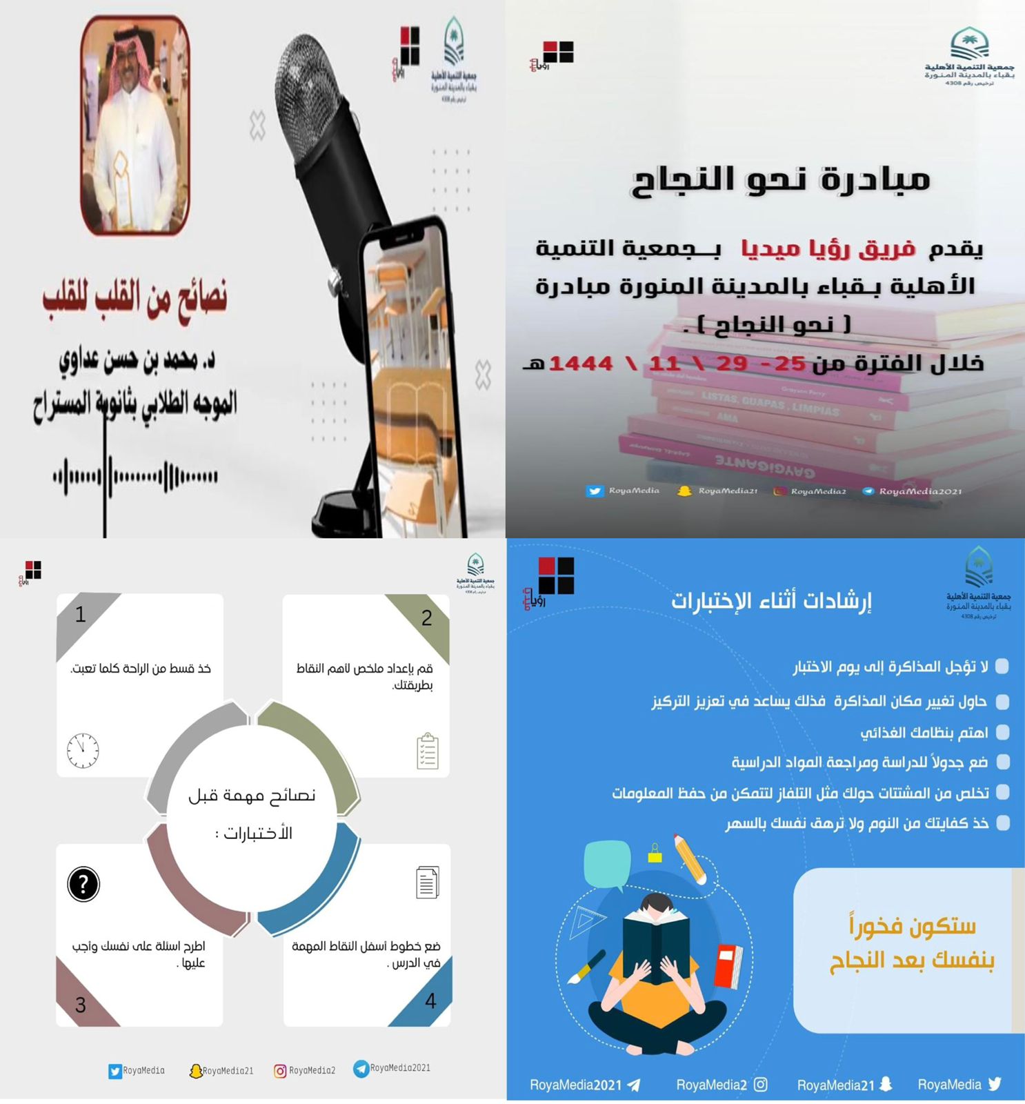 نفذ فريق رؤيا ميديا بجمعية التنمية الأهلية بقباء بالمدينة المنورة مبادرة “نحو النجاح “والتي تأتي قبل الاختبارات النهائية