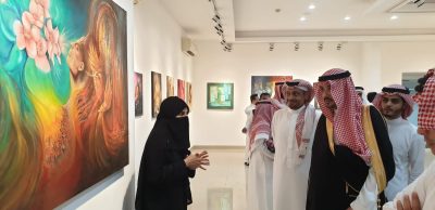 حيث تجول الأمير في كل أرجاء المعرض وأبدى إعجابه بلوحاته الفنية مشيرا” سموه إلى أن المعرض يحمل في طياته لوحات جميلة ومعبرة ذات فكر فلسفي وثقافي وإنساني ينم عن خبرة وفلسفة الفنانة شتيوي ومتمنيا سموه للفنانة مواصلة إبداعاتها الفنية والمشاركة في معارض عالمية جديرة الاستحقاق بها.
