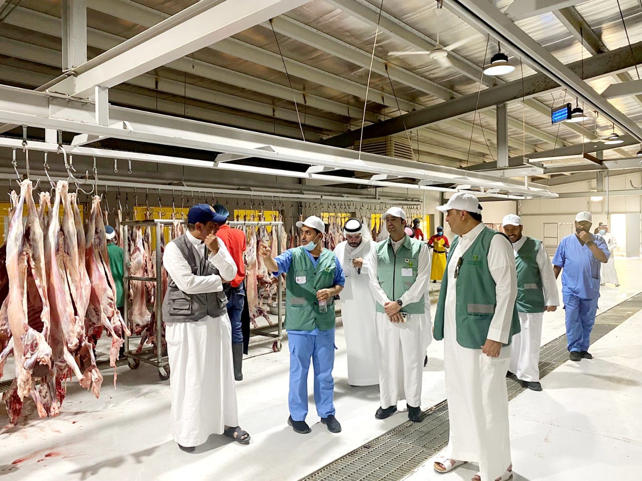 وهناك خططًا تنظيمية لتشغيل المسالخ قصيرة وبعيدة المدى عبر خطة عمل، وتوزيع العمالة والجزارين، وتنظيم فترات العمل، ومراقبة طرق التخلص من المخلفات، والمعدات والآليات المستخدمة، مؤكدًا أن هناك خطوات تنظيمية من لحظة وصول المستفيد إلى مرحلة تسلم الذبيحة، وأن توزيع الجزارين في المسالخ ينقسم إلى 5 مجموعات، هي: (جزارون للذبح، جزارون للتكشيف والتعليق، جزارون للسلخ، جزارون للتجويف، جزارون للتقطيع)، مبيناً تخصيص زي موحد آمن لكل فئة, سواء من الأطباء البيطريين أو العمال أو الجزارين أو الفنيين، والمراقبين ويُلتزَم به.