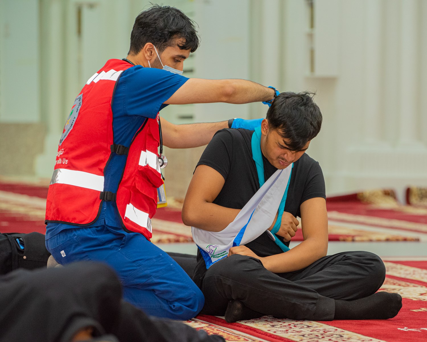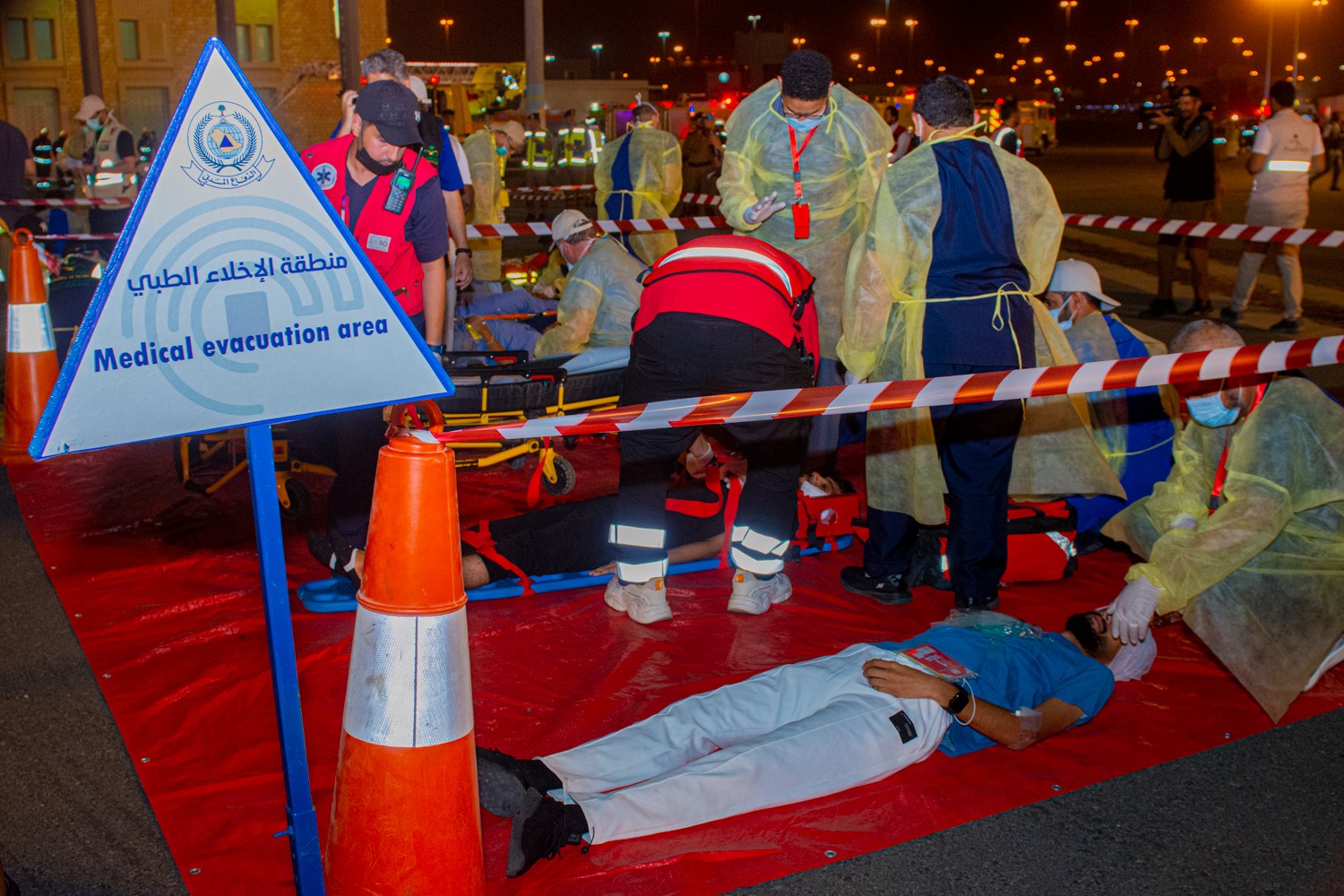 من جهة أخرى شاركت مجموعة الصحة بالمعسكرات في الفرضيات التي نفذتها يوم أمس مستشفيات النور ، ومنى الوادي، ومنى الجسر، والتي تمثلت بوقوع عددٍ من الإصابات بين الحجاج.