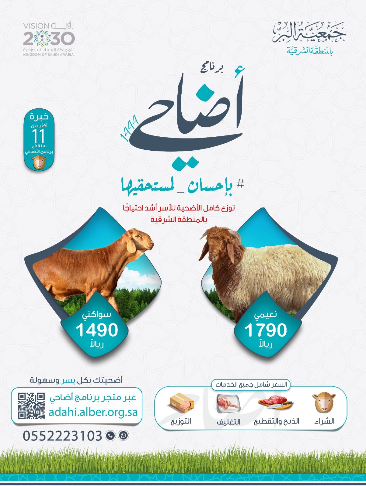 ودعا “المسند” أهالي المنطقة الشرقية الراغبين في أداء شعيرة الأضحية زيارة متجر أضاحي لحجز أضحيتهم من خلاله إلكترونيًا بيسر وسهولة عبر الرابط:https://adahi.alber.org.sa/#reserved