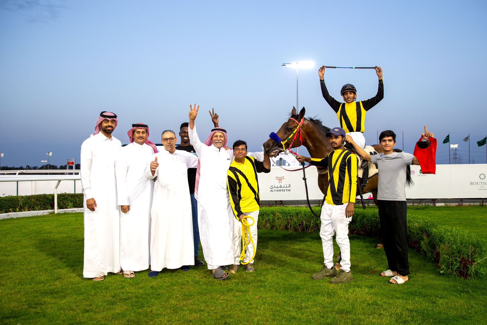 فازت الفرس “هيه” المملوكة لأبناء الملك عبد الله بن عبد العزيز، بالشوط الأول من الحفل الذي أقيم مساء الخميس، بقيادةٍ من الخيّال عبد الله الفيروز، بينما درّبها المدرّب أحمد محمود.